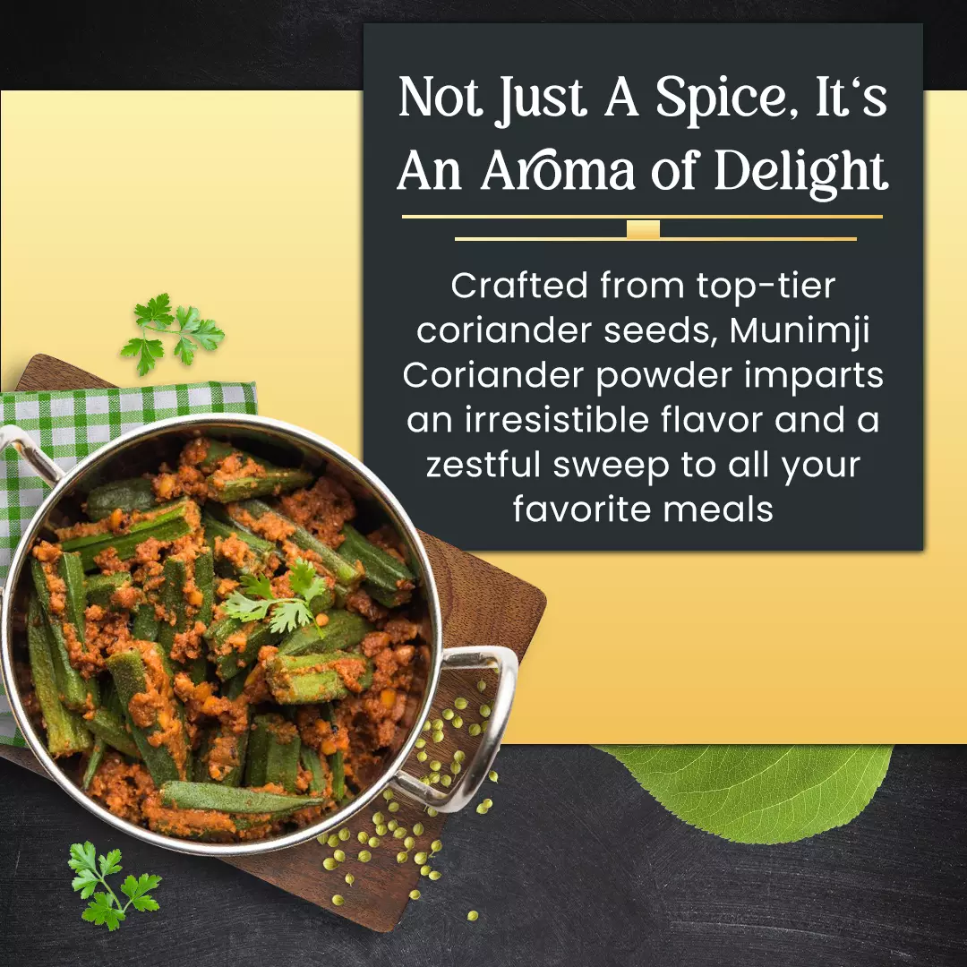 Dive into the rich taste and aroma of Munimji Coriander Powder. Grounded from high-quality coriander seeds, this spice blend adds a delightful zest to your everyday meals. Offering a harmonious balance of taste and texture, it ensures your dishes taste as exotic as they smell.